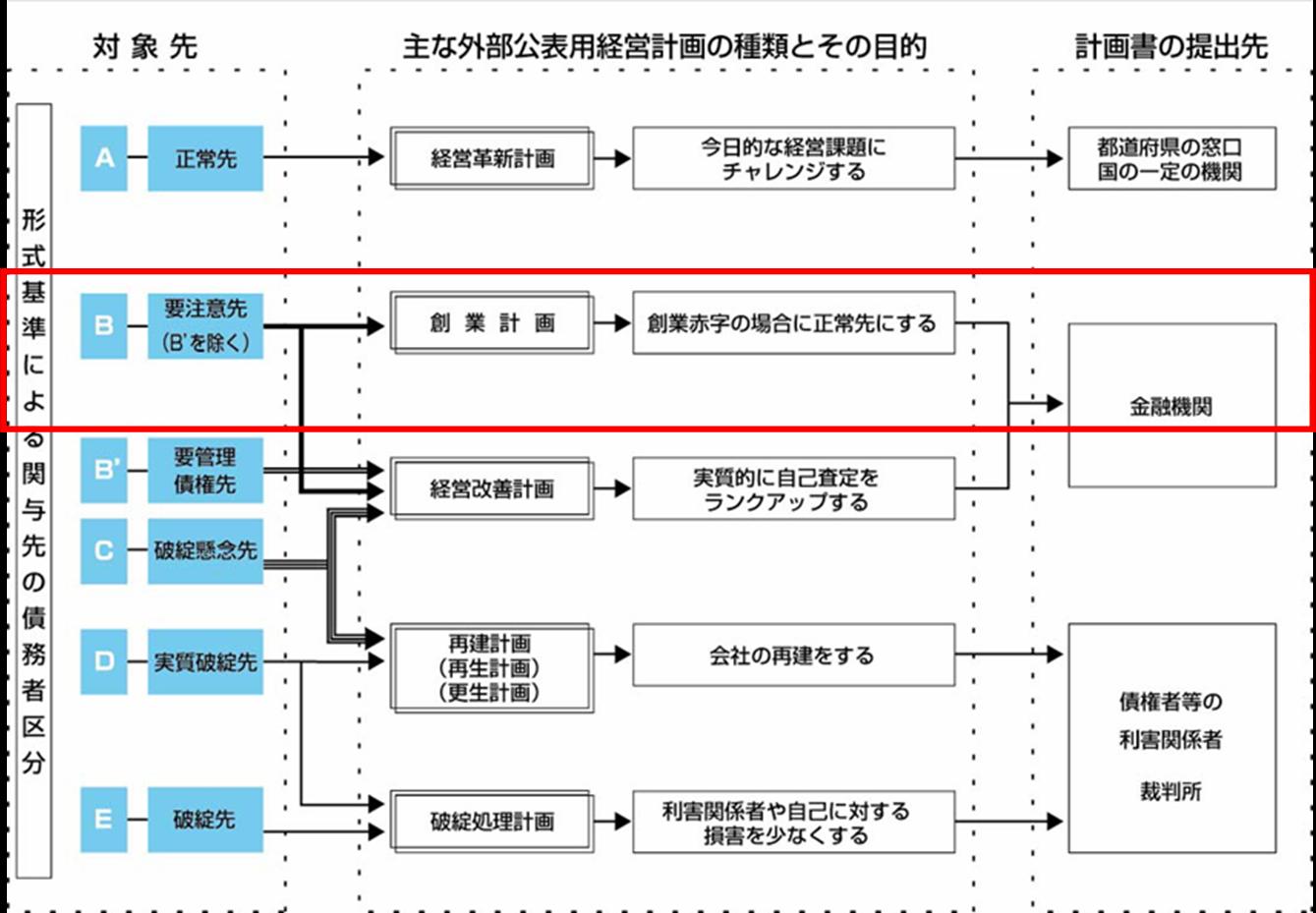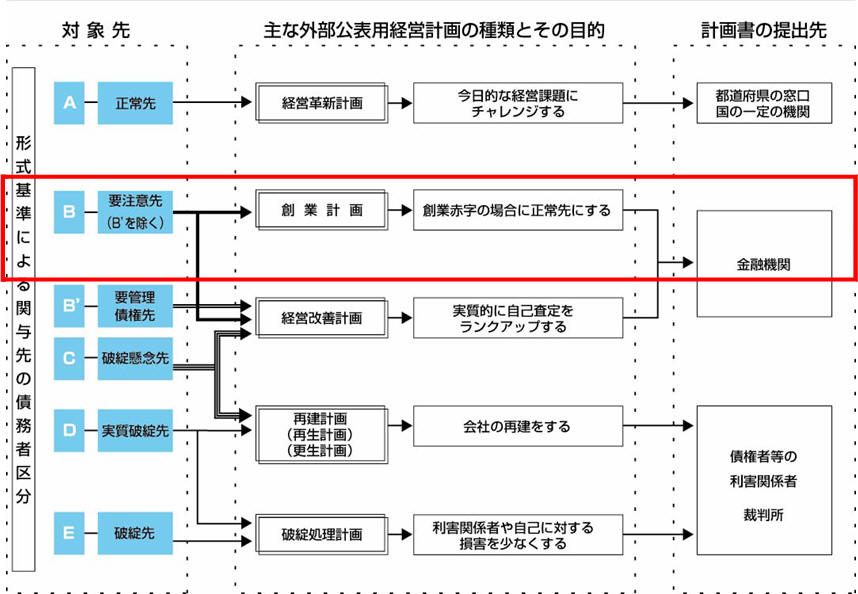 創業に際してあらかじめ事業計画を作成し、開示している場合では、「創業赤字」は、金融機関において原則として「正常先」となる。